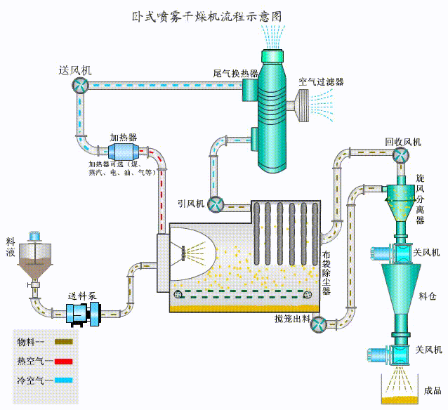 臥式干燥機(jī)目前在制藥、化工、食品、糧食加工等方面,越來(lái)越體現(xiàn)它的重要作用。它是由空氣過(guò)濾器、沸騰床主機(jī)、旋風(fēng)分離器、布袋除塵器、高壓離心通風(fēng)機(jī)、操作臺(tái)組成。由于干燥物料的性質(zhì)不同,配套除塵設(shè)備時(shí),可按需要而進(jìn)行,可同時(shí)選擇旋風(fēng)分離器、布袋除塵器,也可選擇其中的一種。比重較大的物料需選擇旋風(fēng)分離器。比重較輕的物料需配套布袋除塵器,并備有氣力送料裝置供選擇。
